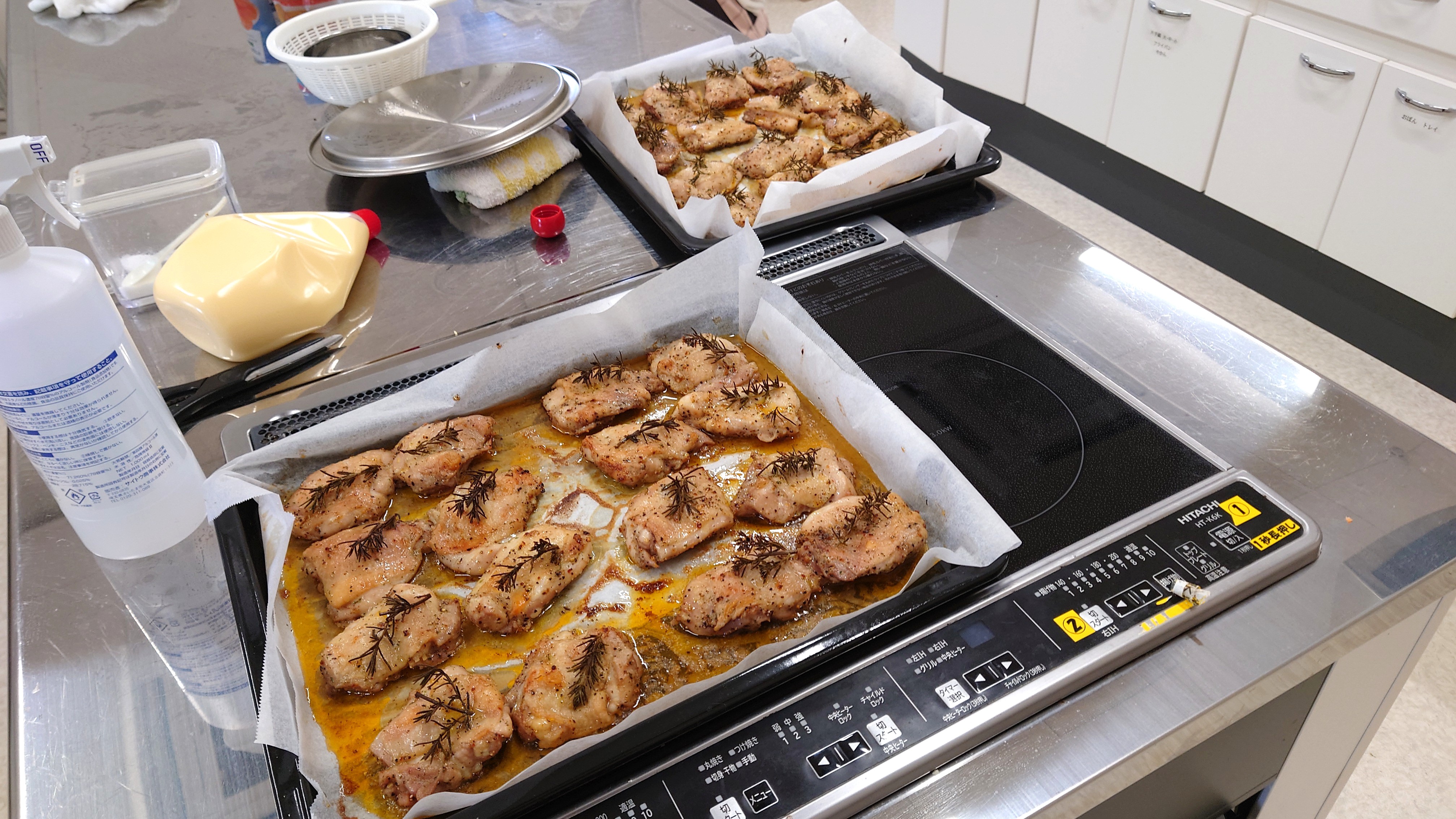 今回のひなたカフェはXmasということで「チキンのレモンペッパー焼き」がメインメニューでした。