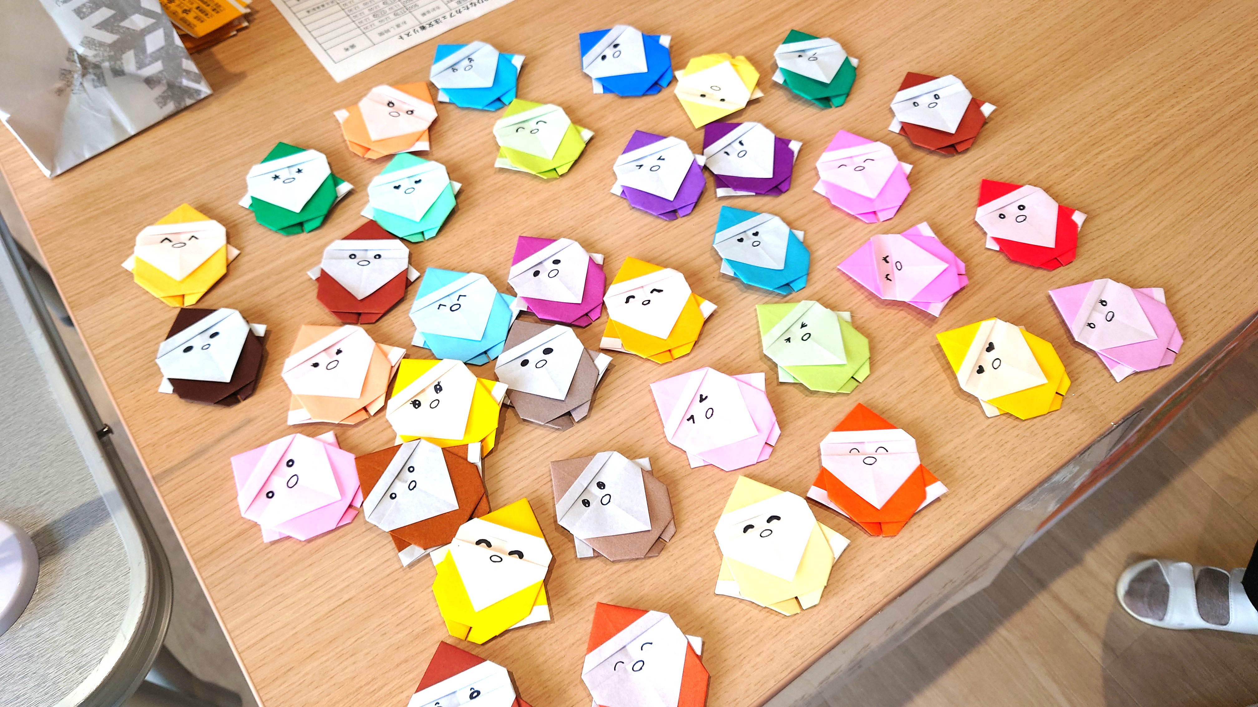 さらに、今回ボランティアに参加して頂いた学生さんが作ってくれた折紙のサンタクロースを全ての方へプレゼントさせて頂きました。